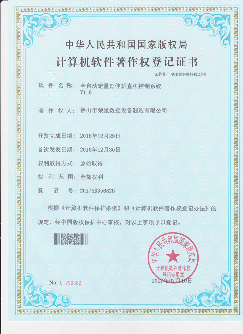 首页 >> 荣誉证书 >>证书 >> 定量延伸矫直机控制系统